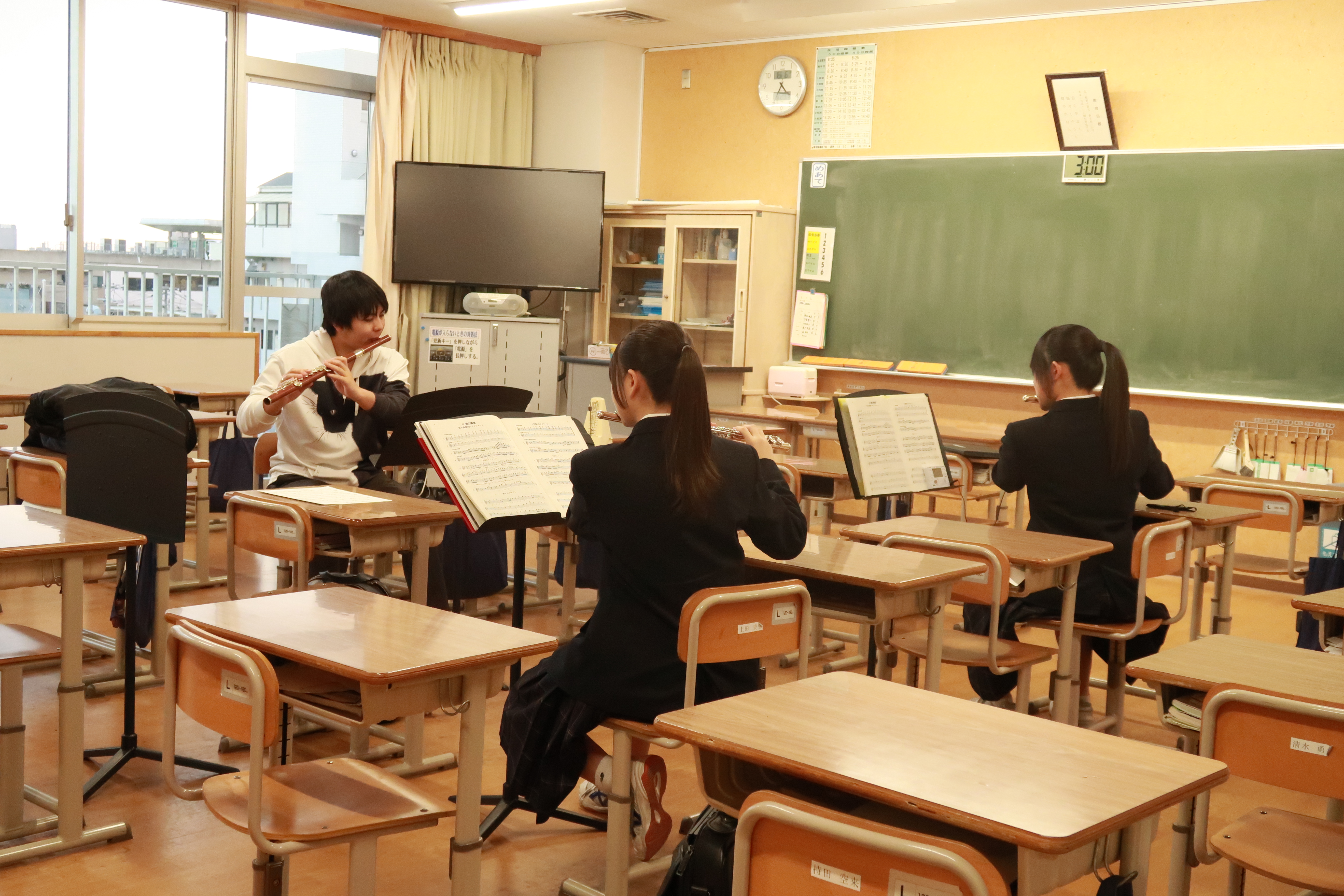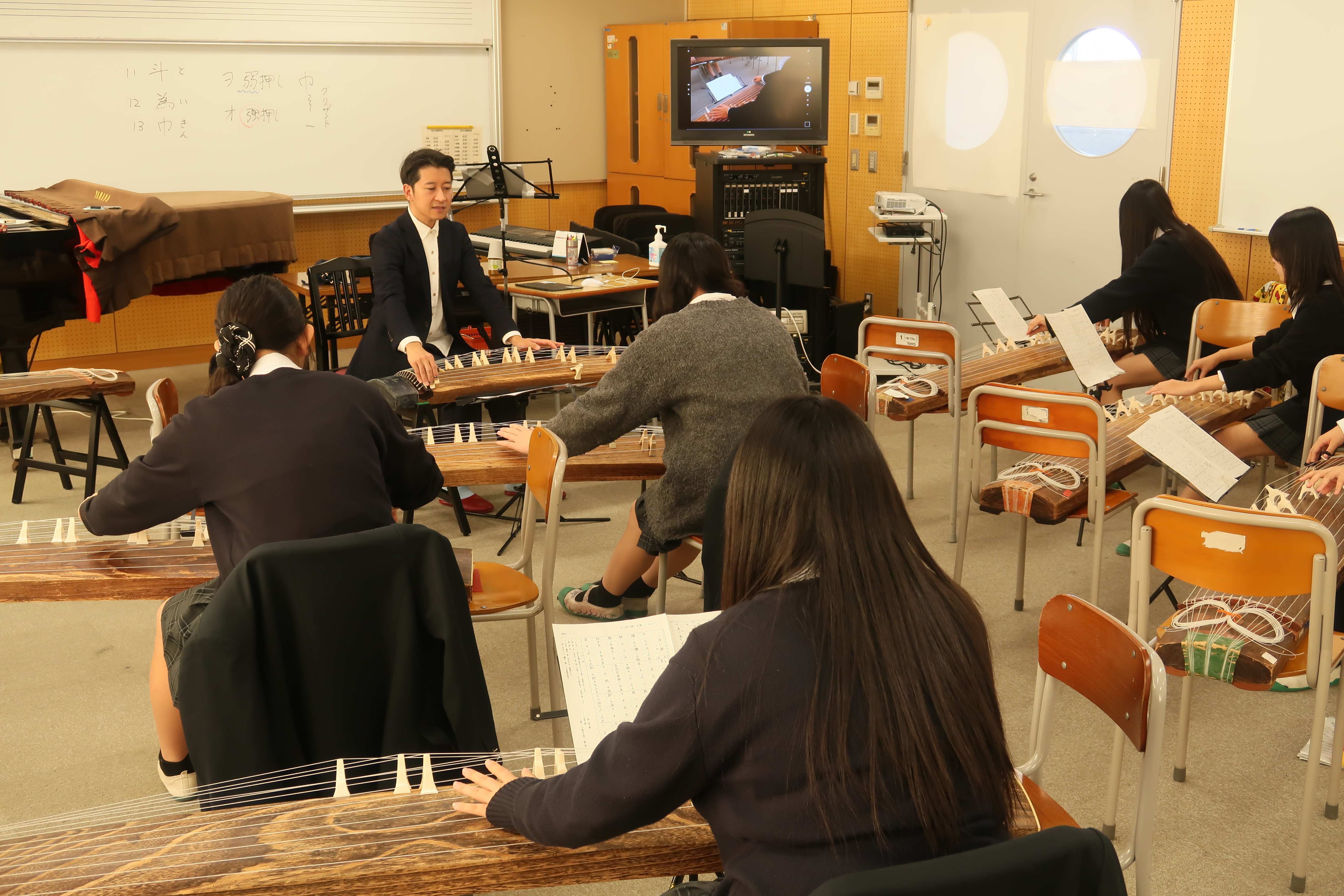 Rising musicians visit students participating in music groups after school, such as brass bands, orchestras, and koto (Japanese zither) ensembles, to advise them on their musical techniques.