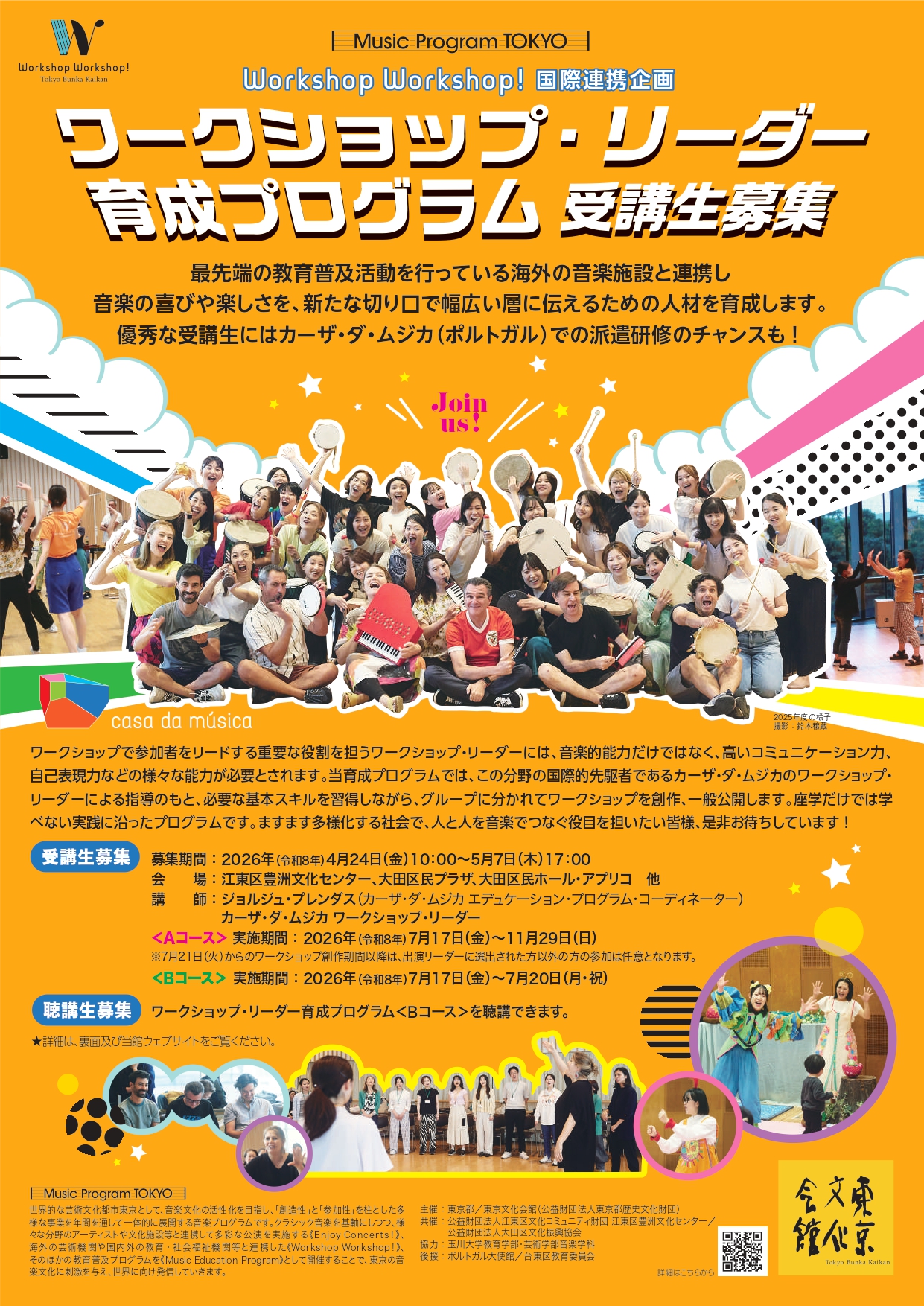* The workshop created through this program will go public as the original workshops of the Tokyo Bunka Kaikan.