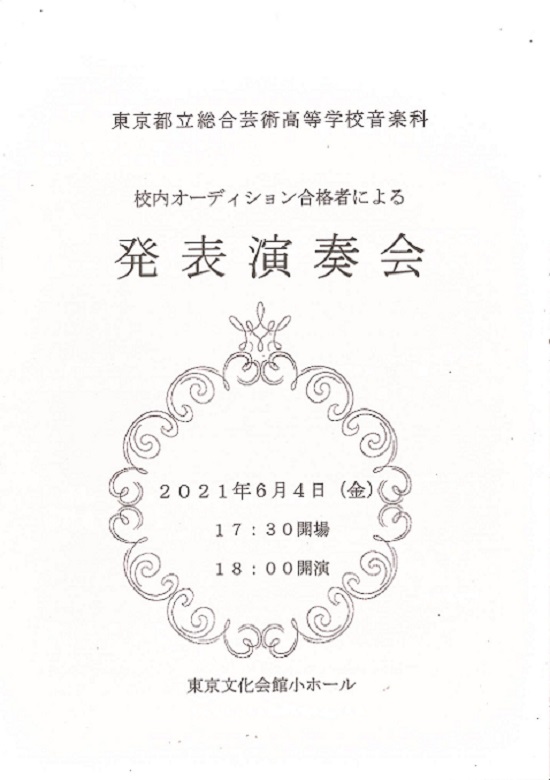 Tokyo Metropolitan Senior High School of Fine Arts, Performing Arts and Classical Music: Recital of the music course
