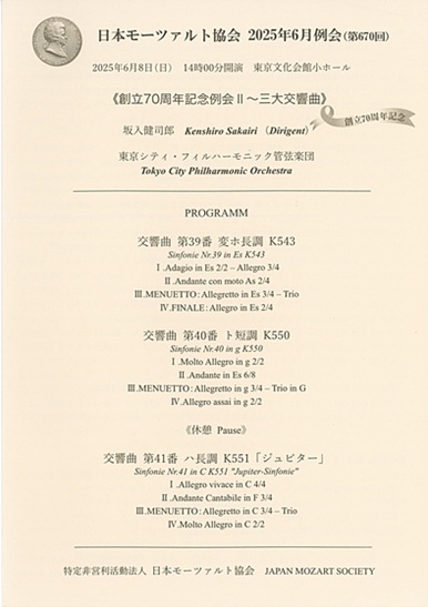 Japan Mozart Society 70th Anniversary Concert Part 2 “Three Great Symphonies”