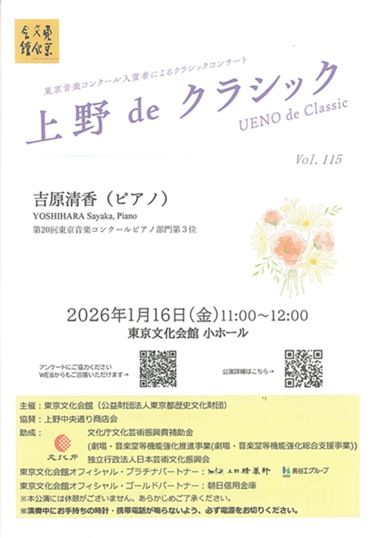 Ueno de Classic Vol.115 YOSHIHARA Sayaka (Piano)