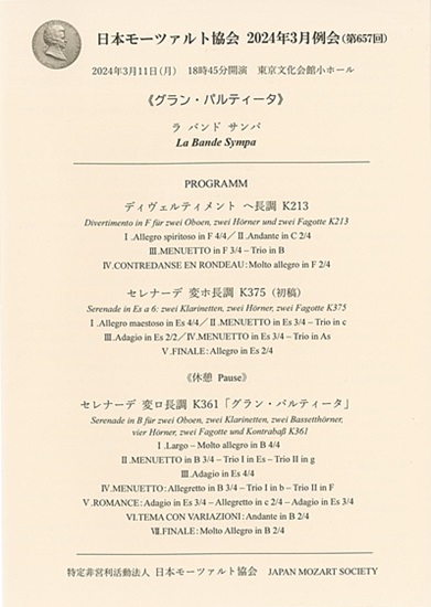 日本モーツァルト協会 第657回例会~グラン・パルティータ~