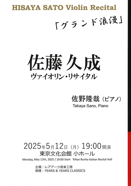 ヴァイオリン:佐藤久成 ピアノ:佐野隆哉 |