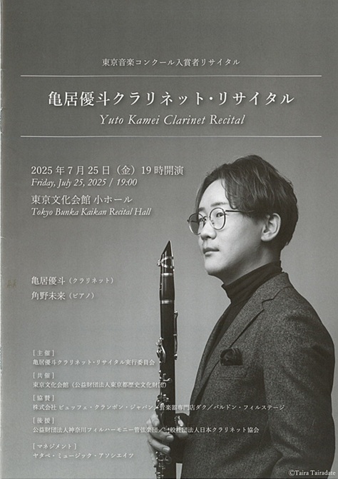 主催:亀居優斗クラリネット・リサイタル実行委員会 共催:東京文化会館(公益財団法人東京都歴史文化財団) |