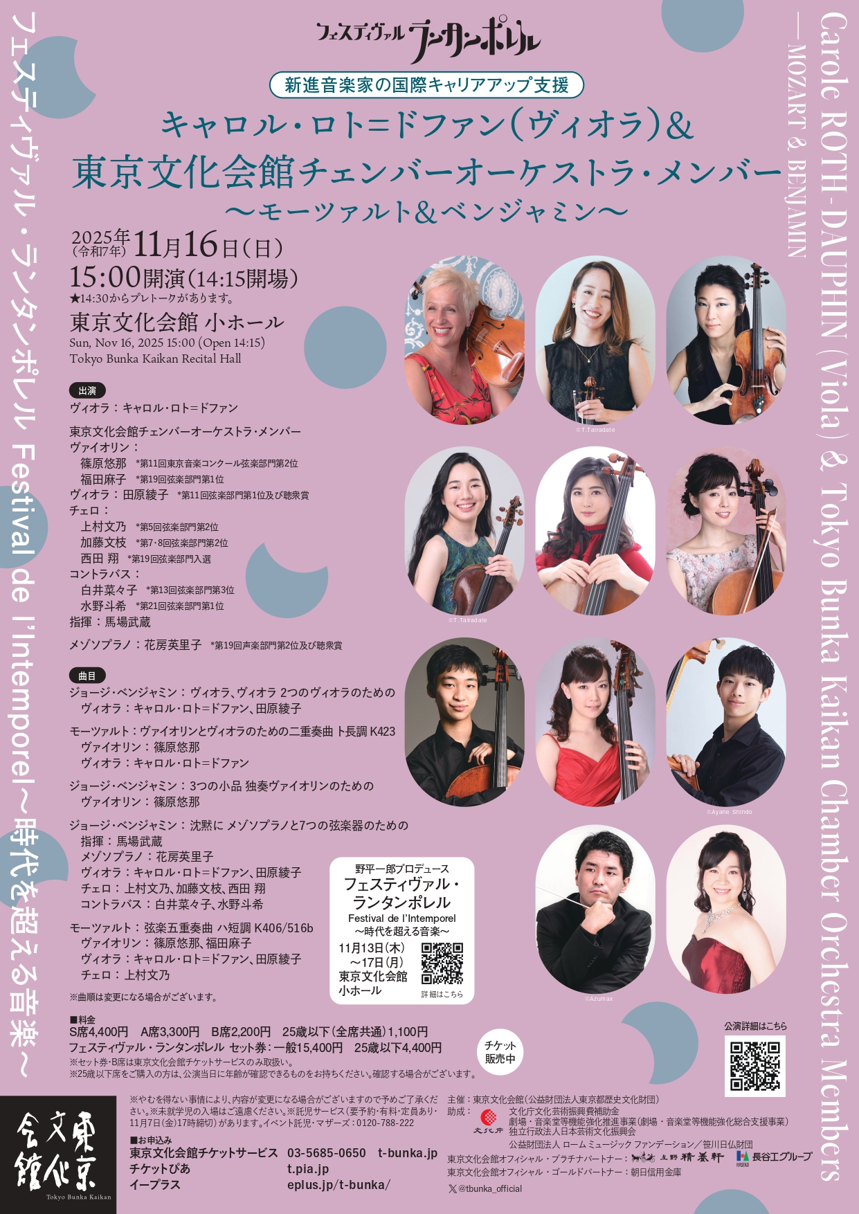 キャロル・ロト=ドファン(ヴィオラ)&東京文化会館チェンバーオーケストラ・メンバー~モーツァルト&ベンジャミン~