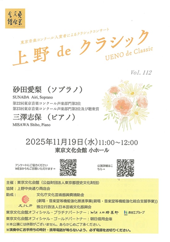 上野 de クラシック Vol.112 砂田愛梨(ソプラノ)
