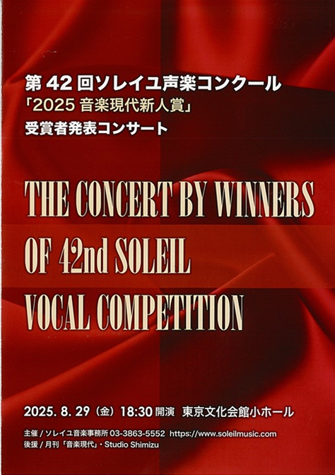 第42回 ソレイユ声楽コンクール 受賞者発表コンサート