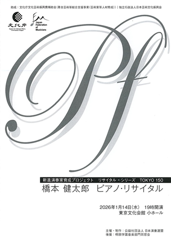新進演奏家育成プロジェクトリサイタル・シリーズTOKYO150 橋本健太郎 ピアノ・リサイタル