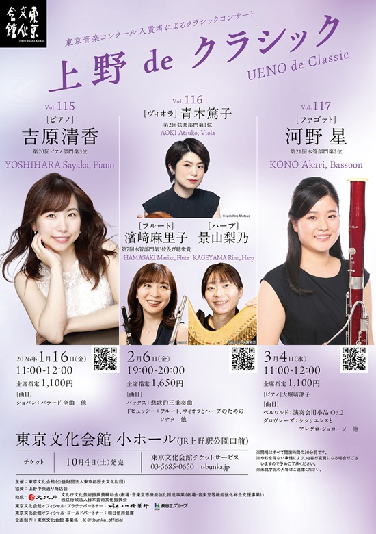 主催:東京文化会館(公益財団法人東京都歴史文化財団) 協賛:上野中央通り商店会 |